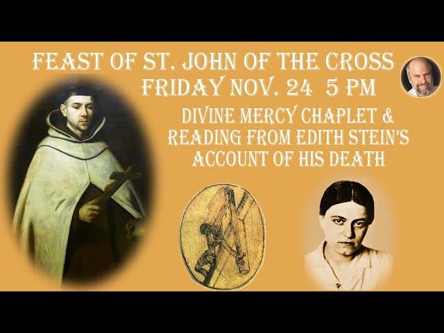 1:19:08Monday November 24 -5 PM EST-- Divine Mercy Chaplet & St. Edith Stein's Account of St. JohnJewishCatholic | 9 days agoMore option