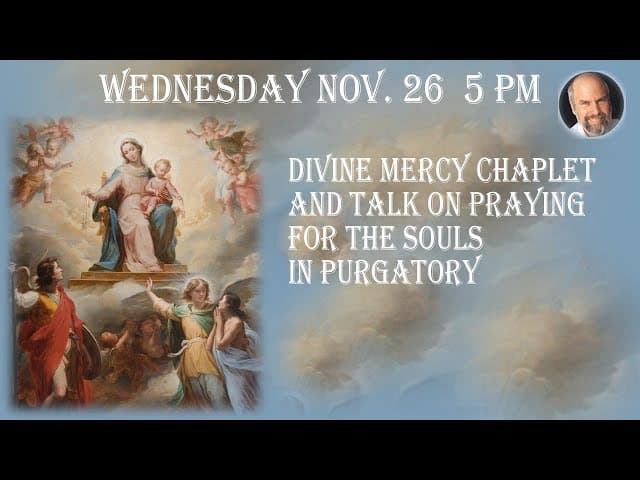 1:7:02Wednesday November 26 -5 PM EST-- Divine Mercy Chaplet & Talk on Praying for the Souls in PurgatoryJewishCatholic | 7 days agoMore option