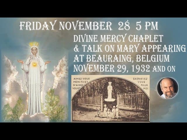 1:27:00Friday November 28 -5 PM EST-- Divine Mercy Chaplet & Talk on Our Lady of Beauraing (Nov. 29, 1932)JewishCatholic | 5 days agoMore option