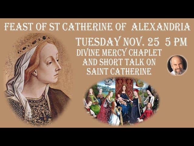 1:16:29Tuesday November 25 -5 PM EST-- Divine Mercy Chaplet & Talk on St. Catherine of AlexandriaJewishCatholic | 8 days agoMore option