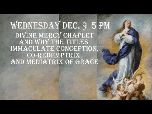 0:01Tuesday December 9 -5 PM EST-- Divine Mercy Chaplet & Talk on The Importance of the Titles of MaryJewishCatholic | 5 days agoMore option