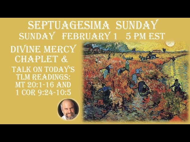 1:24:08Sunday Feb. 1 (Septuagesima Sunday)--5 PM EST-- Divine Mercy Chaplet & Talk on Today's TLM ReadingsJewishCatholic | 1 day agoMore option