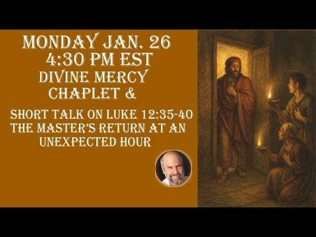 56:15Monday Jan. 26, 2026--4:30 PM EST-- Divine Mercy Chaplet & Short Talk on Luke 12:35-40JewishCatholic | 7 days agoMore option